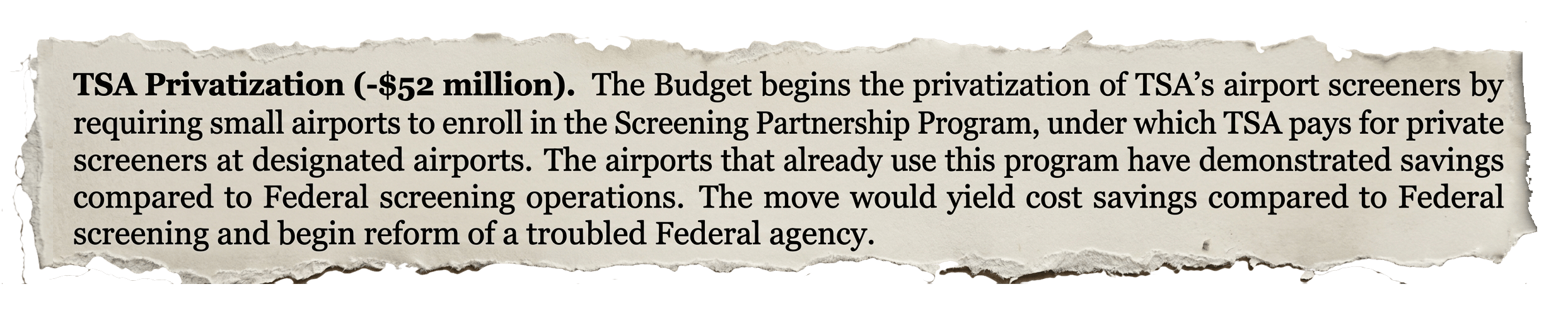 The president’s proposed budget (pg. 27) would also mandate that small airports enroll in the Screening Partnership Program (SPP). This program allows airports to use private contractors instead of federal screeners, while the TSA (which the document calls a “troubled federal agency” without further explanation) retains full oversight. Under SPP, TSA still sets all procedures, certifies personnel, and enforces compliance standards. The passenger experience and security requirements remain the same, with differences largely limited to staffing and uniforms. Apart from San Francisco (SFO) and Kansas City (MCI), the program is used at a limited number of U.S. airports, mostly in Montana and other rural areas. In nearly 25 years, no airport of even moderate size has attempted to switch from TSA to private screeners.